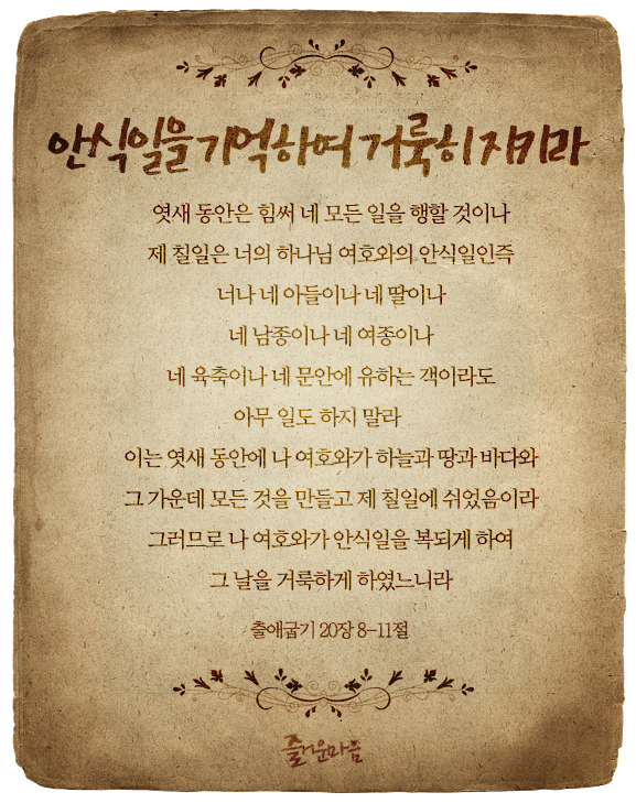 알려주신 많은 내용 가운데 안식일이 있습니다.